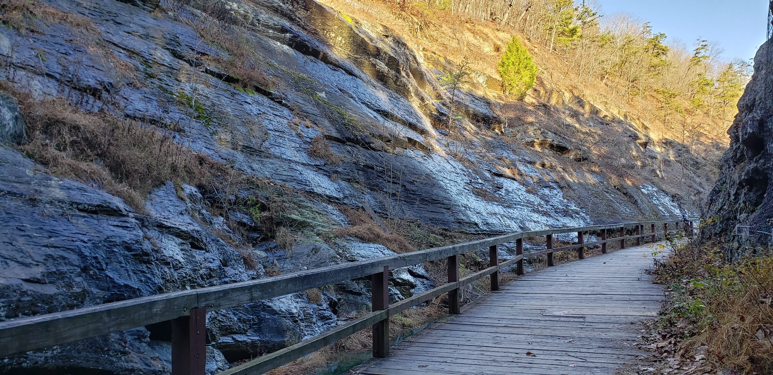 Steep rock slopes flank both sides of the towpath and have undergone prior scaling and stabilization work. Due to rockfall events and concern for public safety about 1000-ft of the towpath downstream of the historical PawPaw Tunnel was closed in November 2020 by the National Park Service.