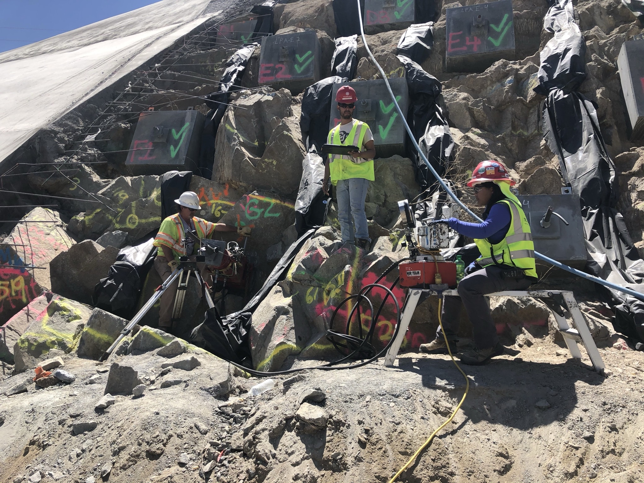 In September of 2017, USACE awarded the joint venture of Flatiron/Dragados/Sukut (FDS) a $323 million contract to complete the Phase II Dam Safety Modifications. The modifications included raising the main dam and auxiliary dam 16-ft, creating a 300-ft long auxiliary spillway, and a 1300-ft long, 28-ft tall labyrinth weir anchored to the bedrock walls of the spillway. Nicholson Construction Co. was retained by FDS to provide pattern rock anchors, tiedown anchors, spot anchors, shotcrete dowels, and j-hooks to tie the Labyrinth weir and auxiliary spillway to the bedrock surface.